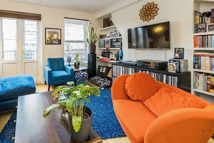 My Wapping abode is the first flat that I’ve decorated and furnished entirely. It’s the most comfortable and peaceful place I’ve ever lived in. Prior to living here — ignoring the pandemic lockdown periods — I never stayed home consecutively. I can’t sit still, in general, and I’m constantly seeking social and cultural stimulation. This flat has instilled in me a contentment and ability to relax that was previously absent. Filled with my records and instruments, colourful art and furniture, plus west-facing windows for afternoon sunlight, I don’t feel the need to be anywhere else.